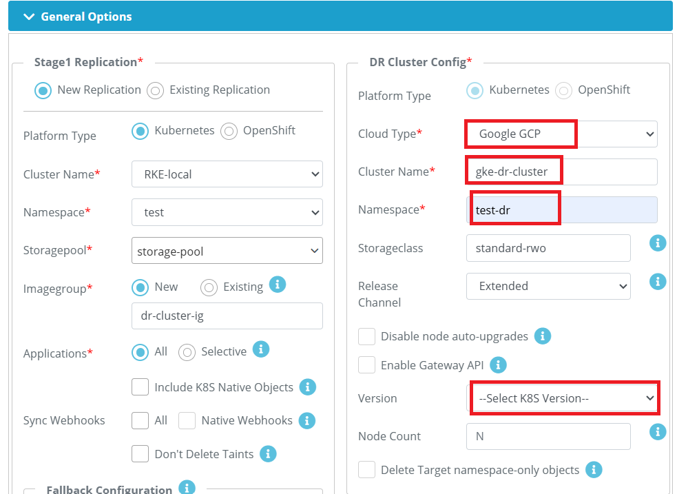 2. After that you will get a below page to select your source cluster and choose your GCP DR cluster config section.