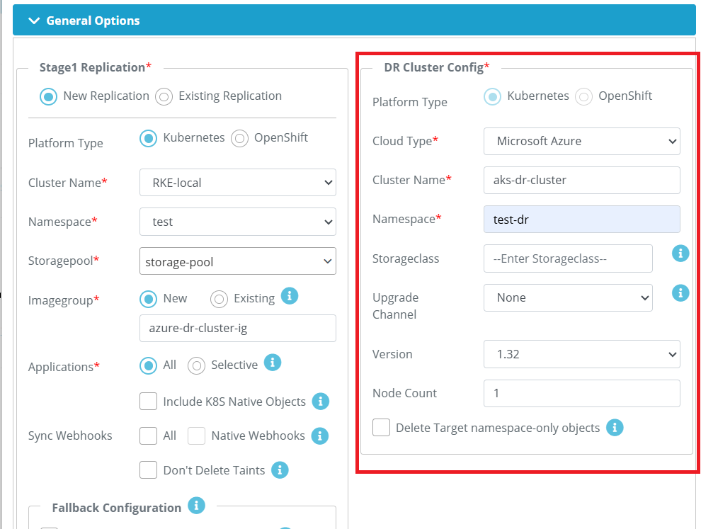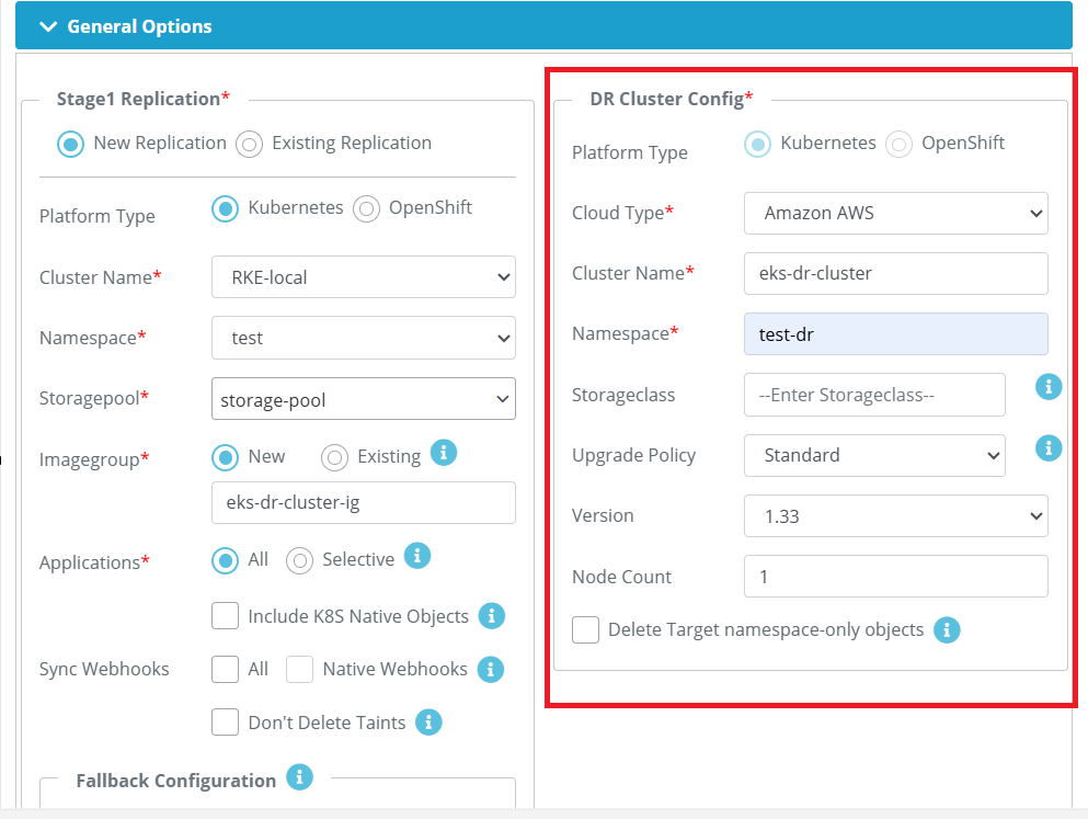 | Cluster Name | Provide any name , it will create a DR cluster with that name. |