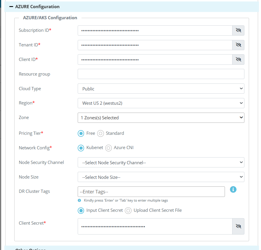 | Zone | This option is not mandatory, but you can provide any zone from dropdown list if cluster is multizonal. |