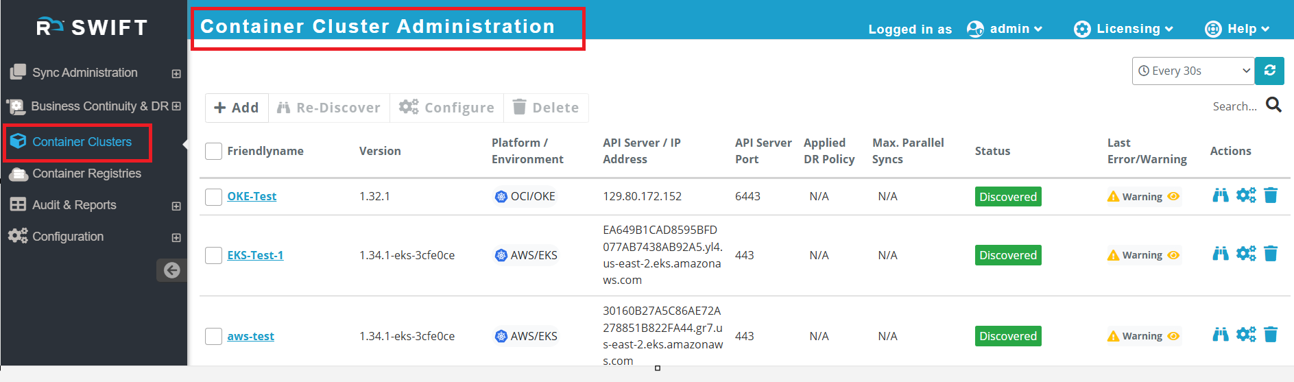 6.If you perform a ‘Failover’, the cluster will be created. You can go to the ‘Container Cluster’ page, where you’ll see the newly created cluster. You can refer to the screenshot below for reference