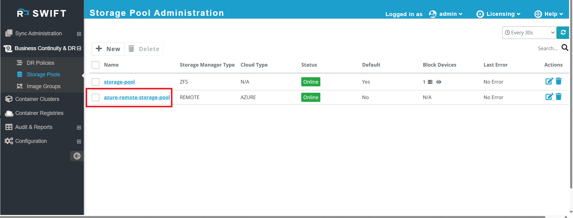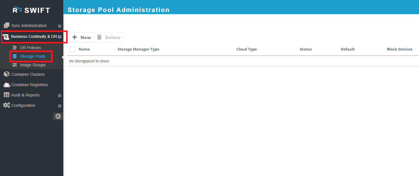 1. Login into the SWIFT dashboard, navigate to the Business Community & DR section tab, and select Storage Pools.