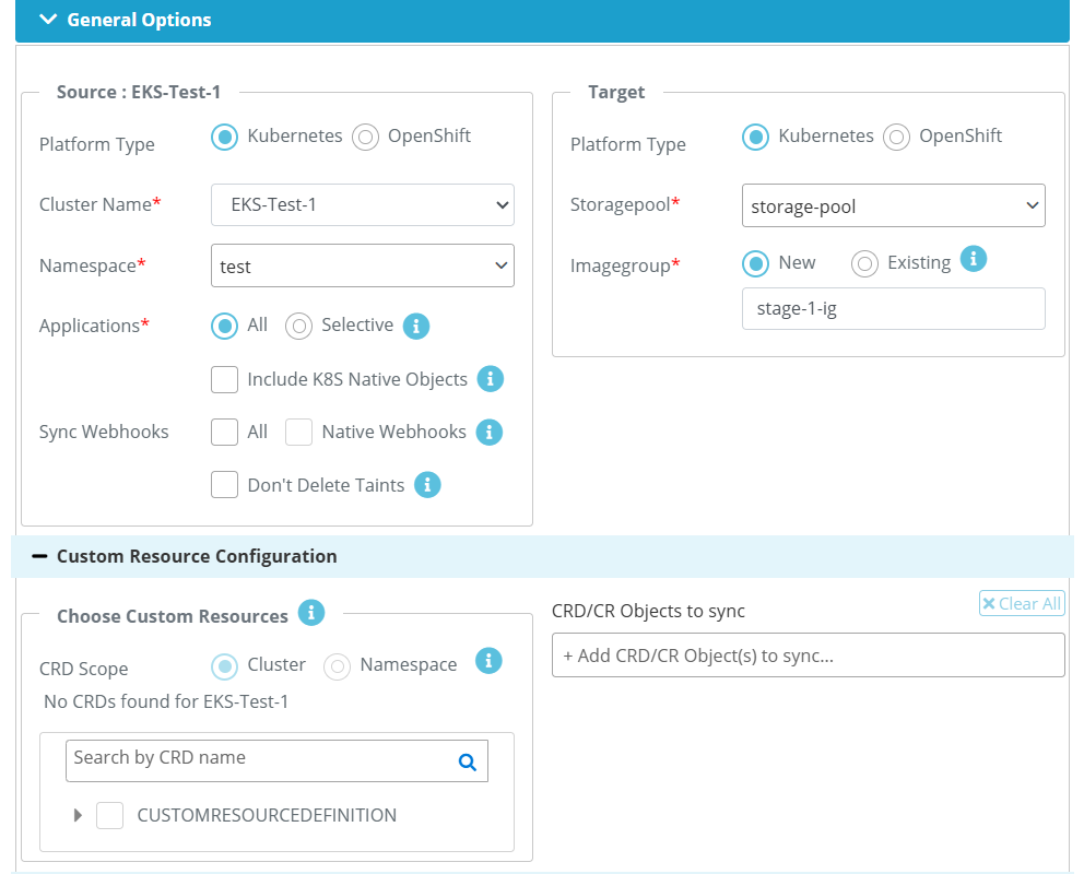 | Sync webhook (Source side) | ALL --> If you select this, then all webhook that are present in the source, it will migrated to target. Native Webhook --> Includes cluster-level native Kubernetes webhooks during migration. Dont delete the taints --> By default taints going to be deleted, if you dont want this, then you can select this option |