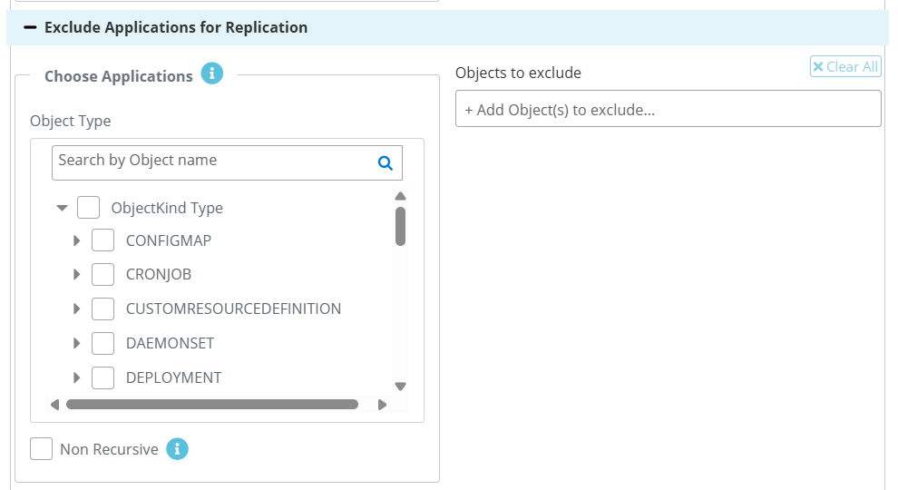| Exclude applications for replication | If you want to exclude certain application or objects from source side, then you can do from this option |
