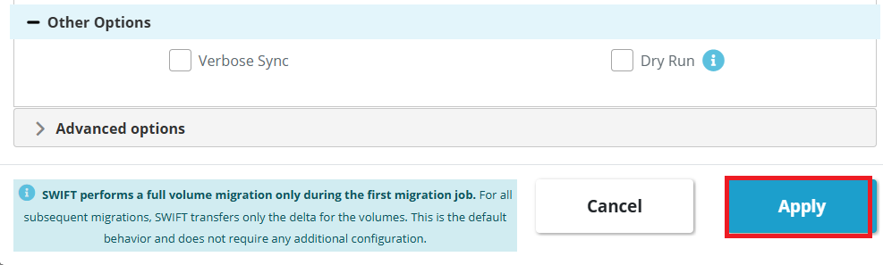 | Image Group | We need to provide the image group name it will be created during sync. An Image Group in SWIFT is a collection of volume images captured from an application during the backup or sync process. |