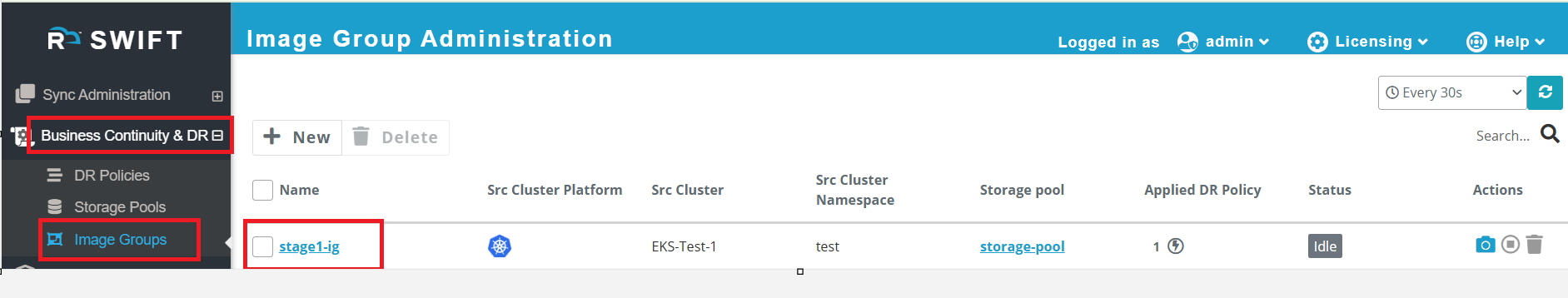 For this go to Image Groups under Business continuity & DR and check correct name that you provided during stage 1 sync.