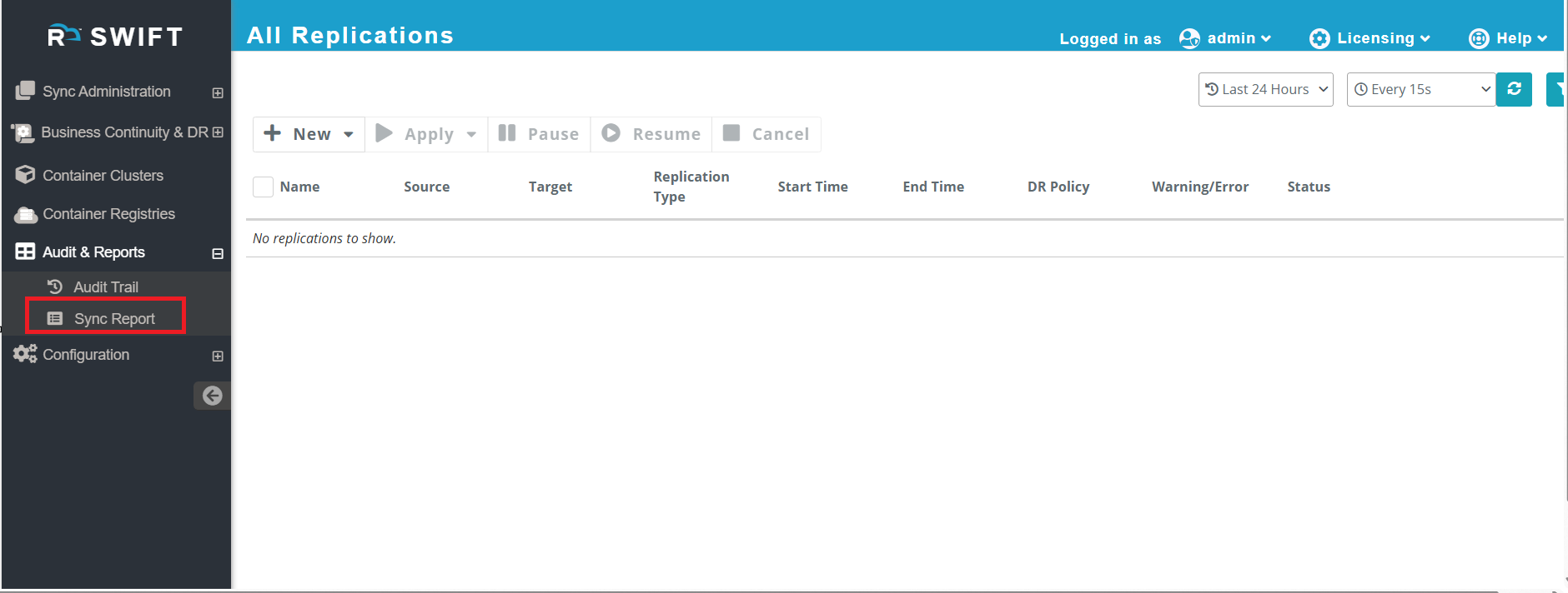 1.Log in to SWIFT and navigate to the Sync Report under the Audit and Reports section.
