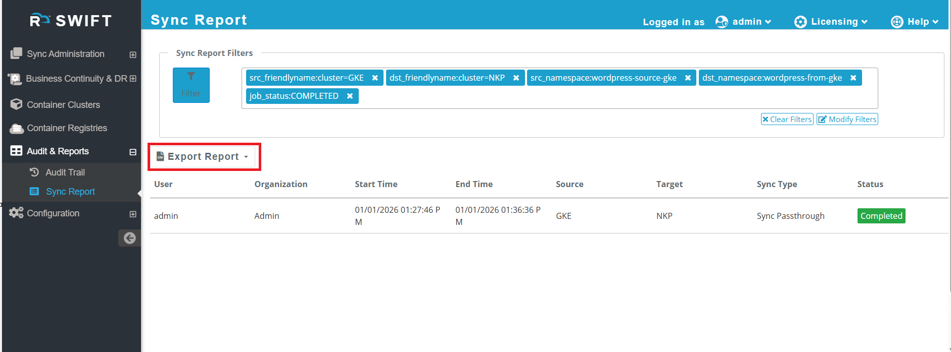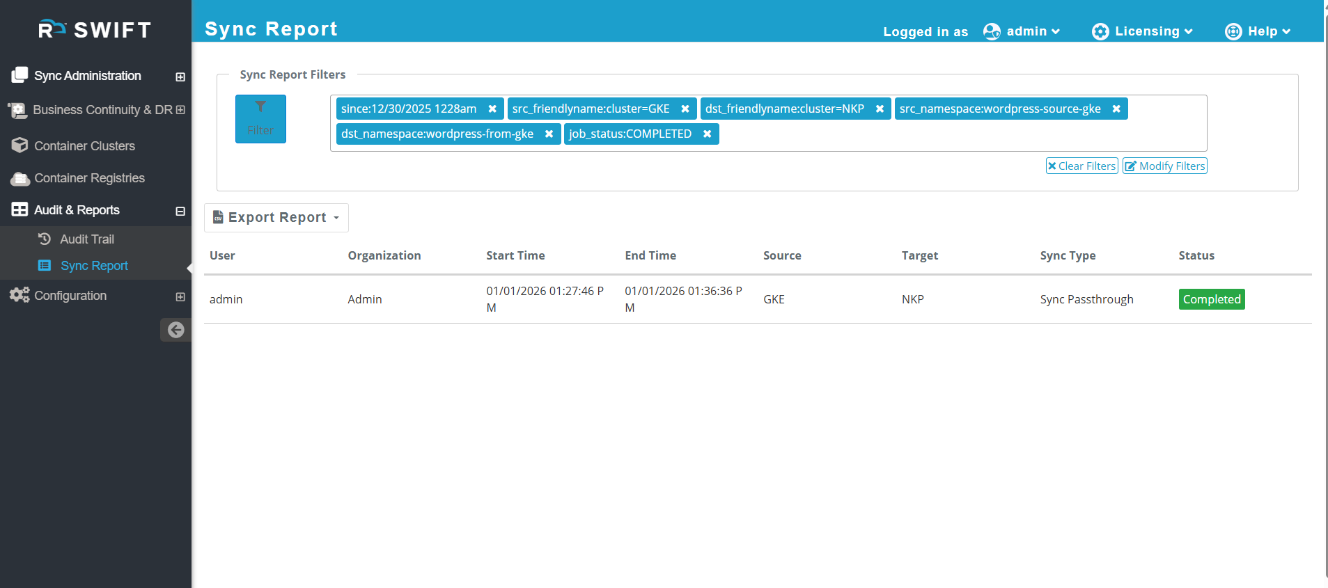 The Sync Report in SWIFT helps customers meet this requirement by providing a clear and complete record of all migration and DR sync activities. Using this report, teams can demonstrate that compliance processes are in place and operational across environments.