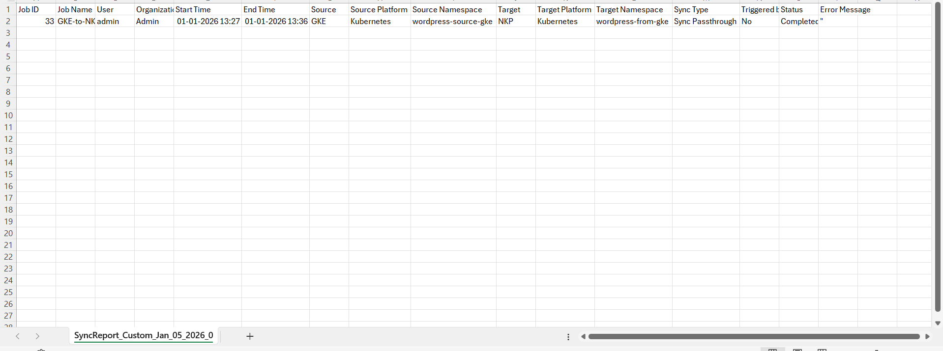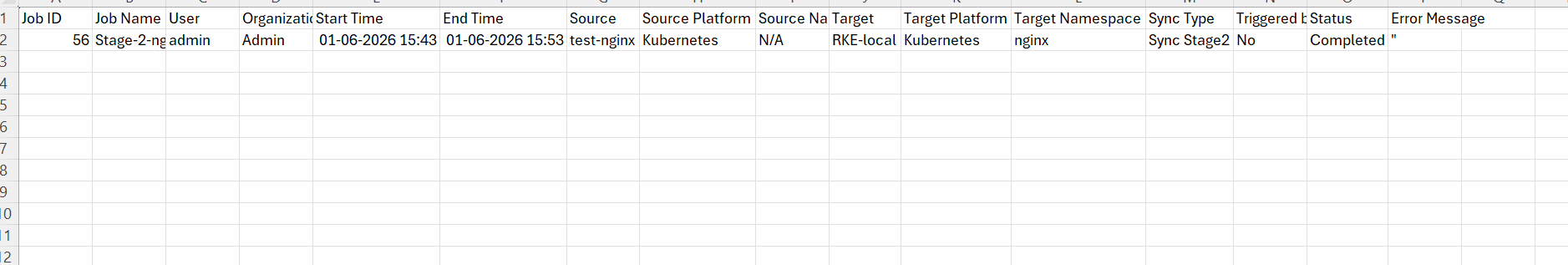 6. The exported Sync Report provides detailed information about each synchronization job in a tabular format (Excel/CSV) for audit and troubleshooting purposes.