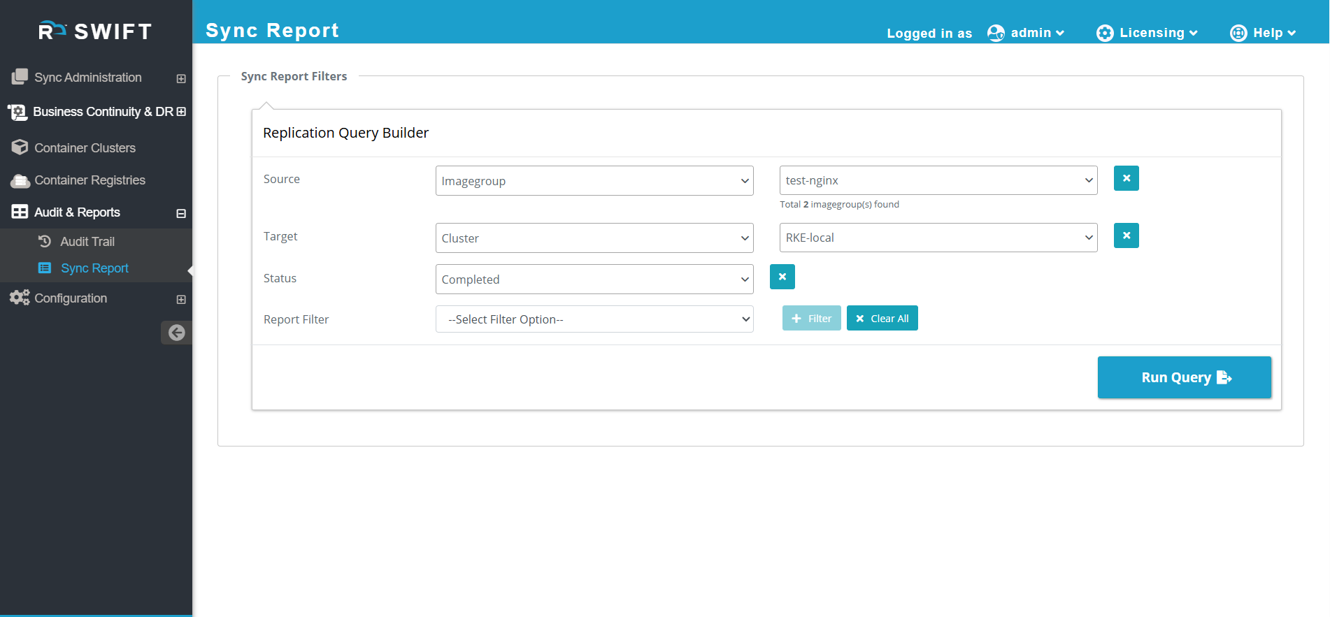 7.1 First you need to select the Source cluster, image group, source namespace and Status and click on Run Query.