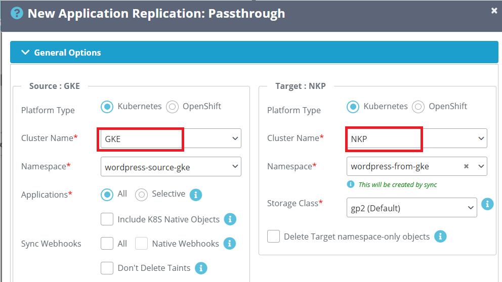 | Application | ALL :- All objects from source namespace will be replicated. Selective :- If you want to sync only selected object then you can use this option. Include K8S native objects :- Include native k8s objects' ensures that Kubernetes native objects will also be synced. Ex. Kubernetes service from default namespace. |
