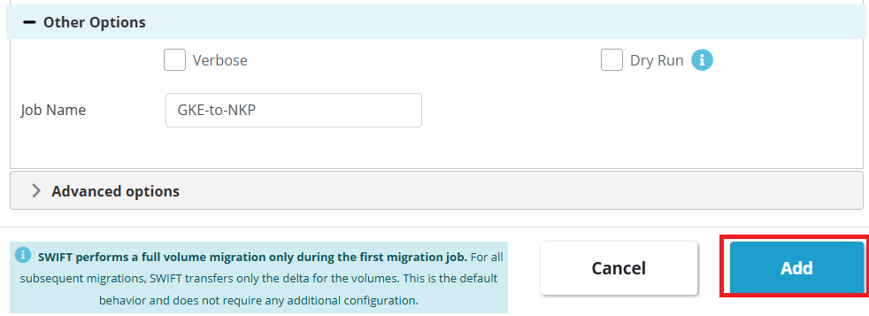 4. Now, you can optionally provide a name for the sync operation. This is not mandatory. Then, click the Add button to start the Migration.
