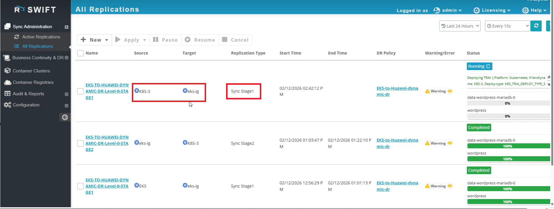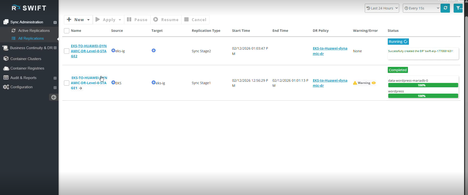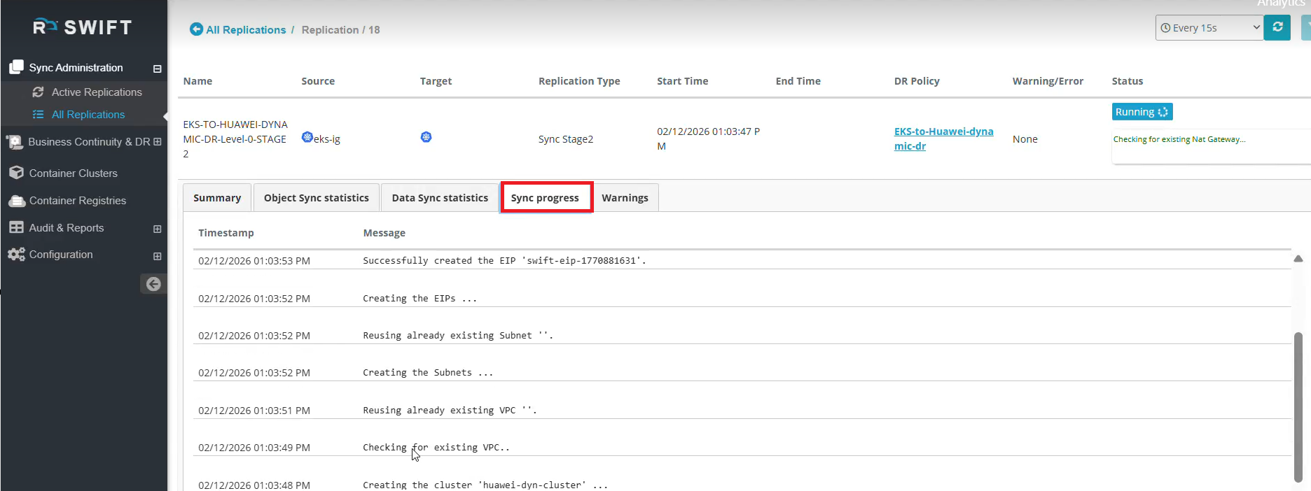 7. Once you click Failover, Stage2 is automatically triggered to provision a dynamic DR cluster on Huawei through SWIFT.