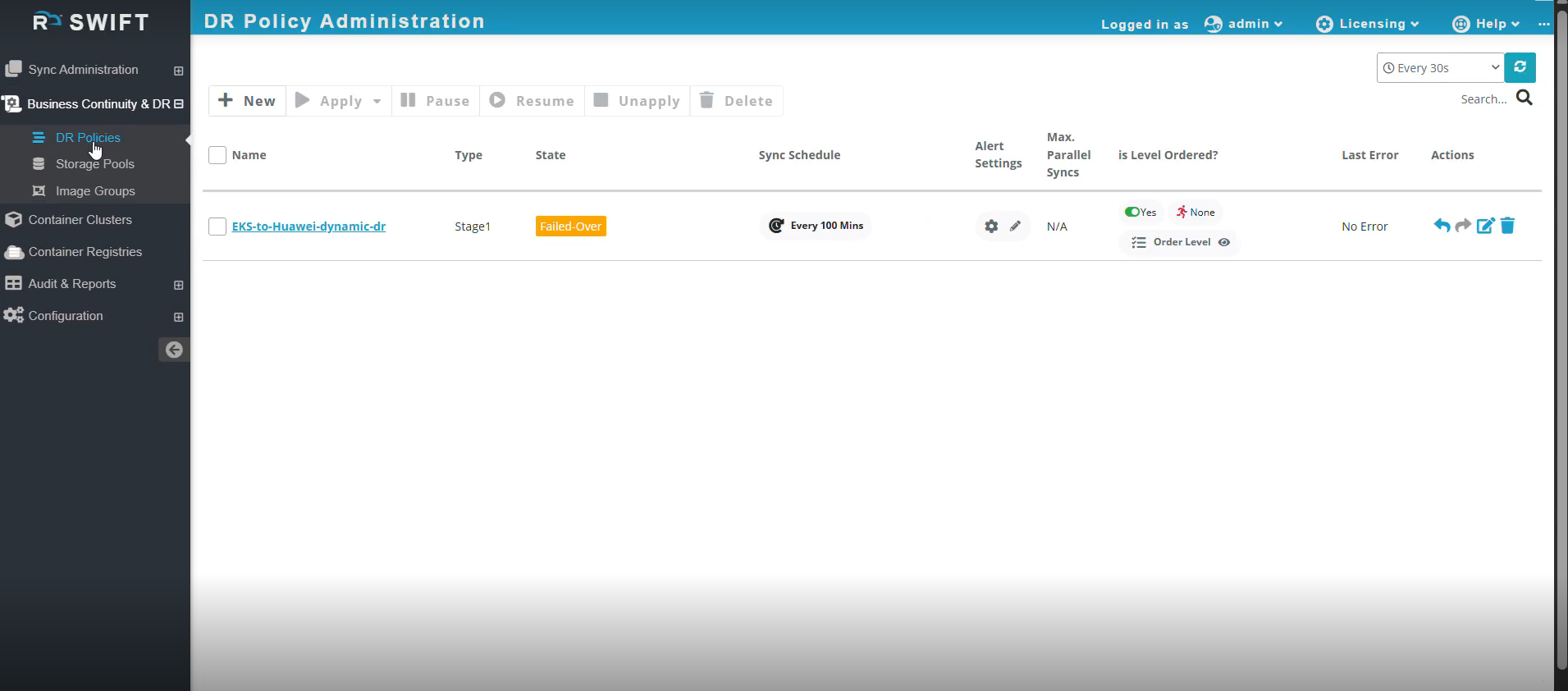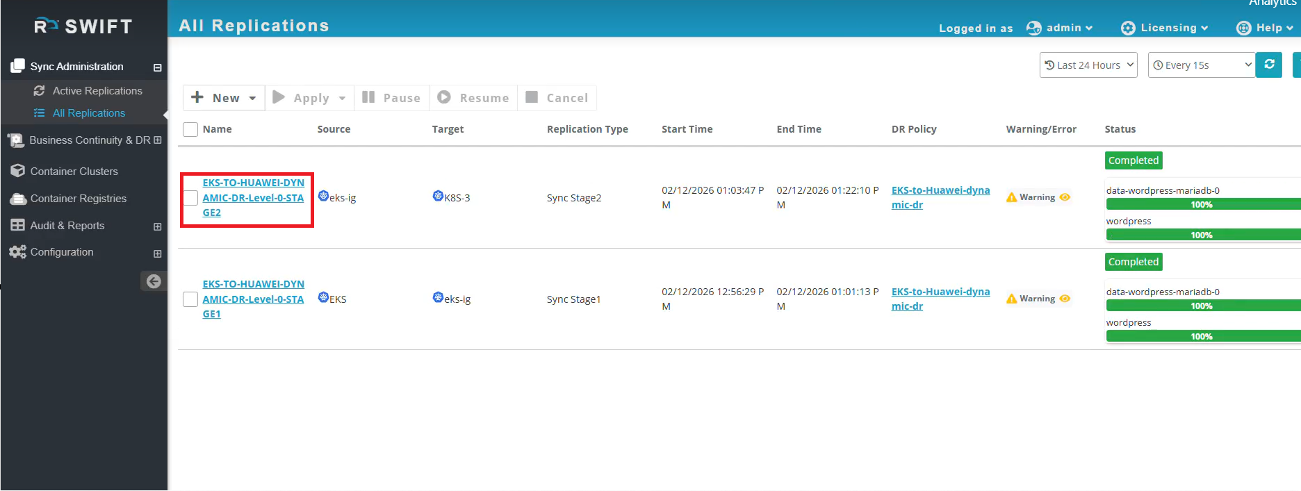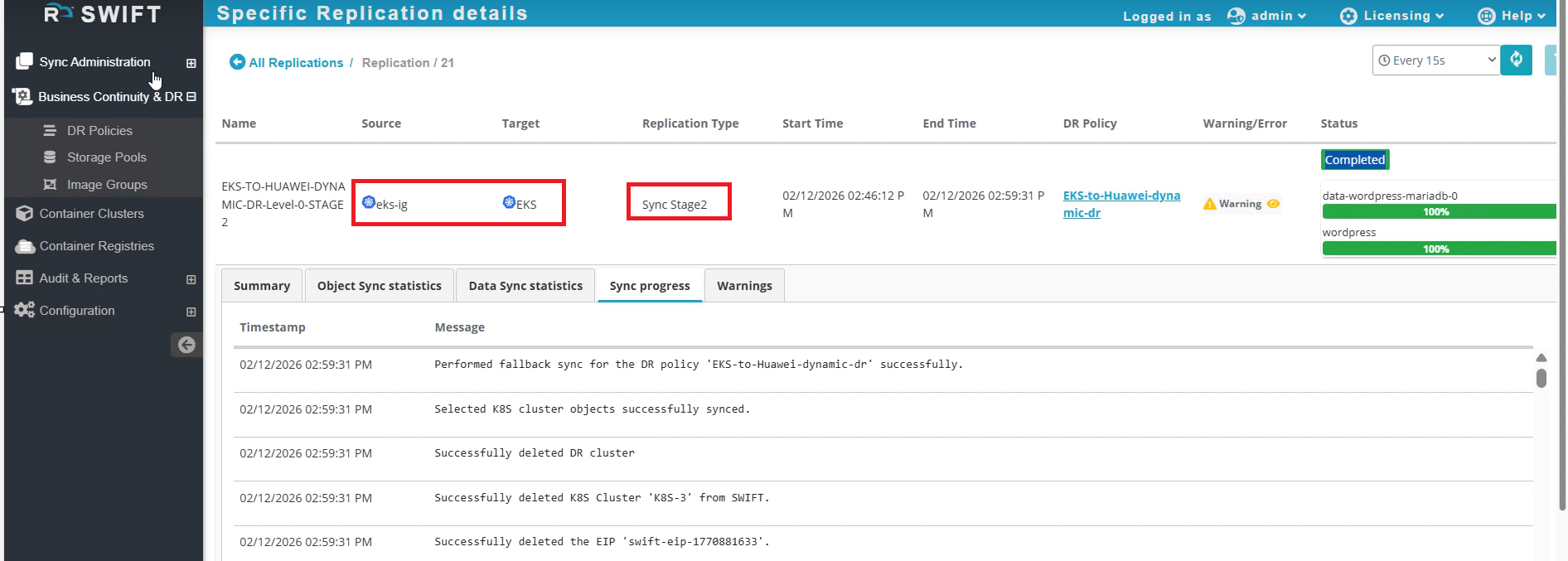 7. Once you click Failover, Stage2 is automatically triggered to provision a dynamic DR cluster on Huawei through SWIFT.