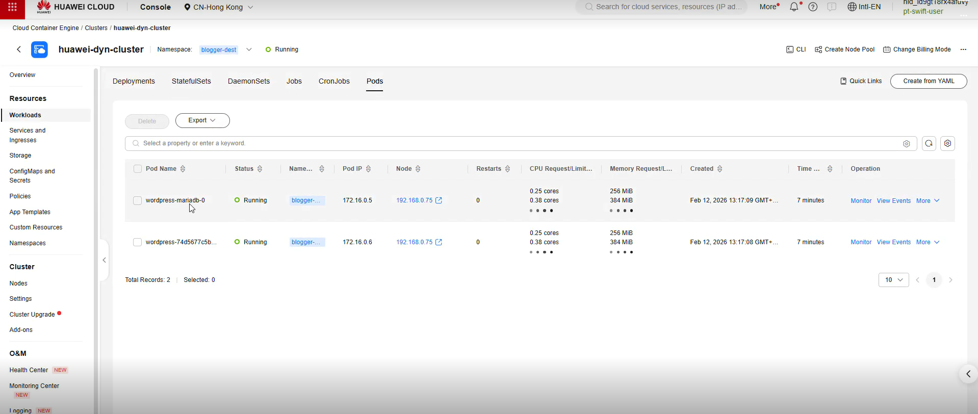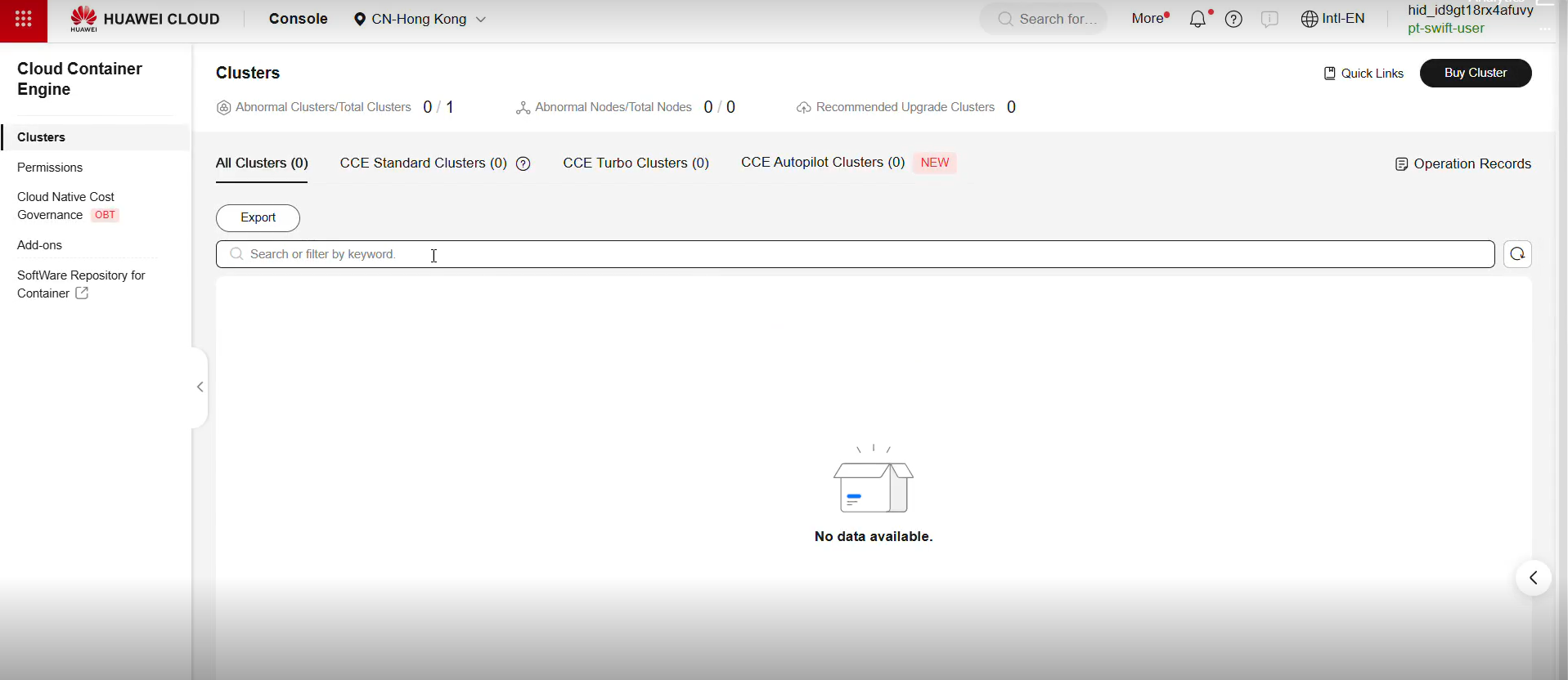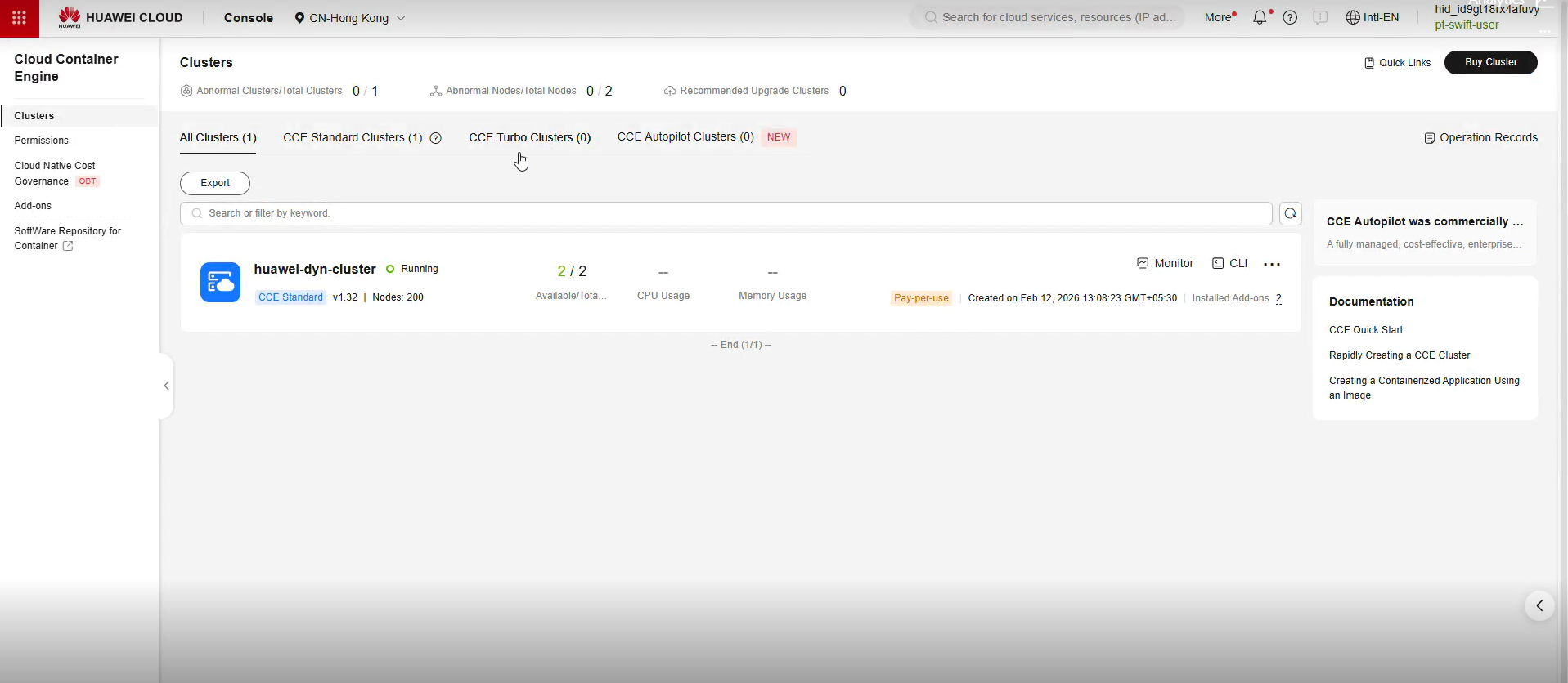 4. You can also confirm that the dynamic DR cluster has been deleted from the Huawei console.